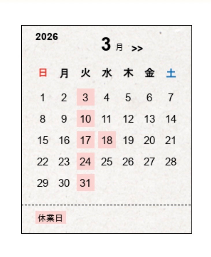 3月の休業日は以下の通りです。